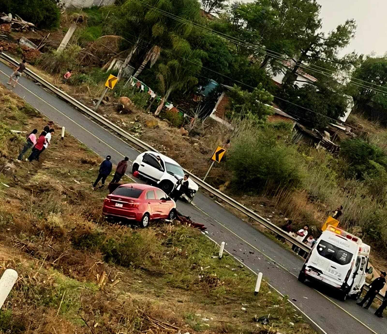 Quiroga, Mich.- Dos vehículos protagonizaron un choque sobre la carretera Quiroga-Zacapu, esto en una peligrosa curva de dicha vialidad, trascendió en redes sociales. De manera extraoficial se supo que el percance dejó al menos cuatro personas levemente lastimadas.