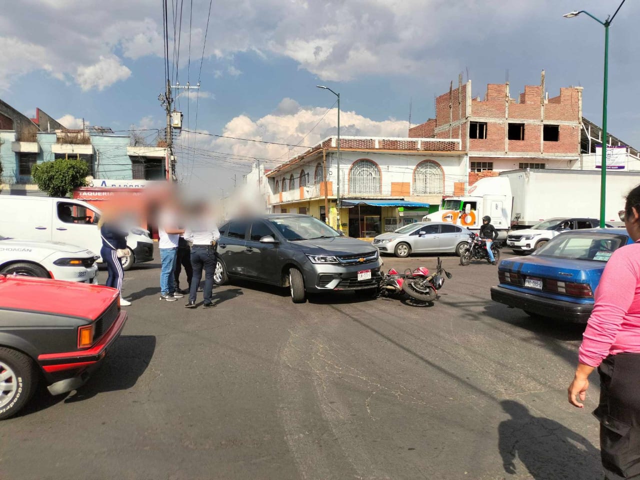 Morelia, Mich.- Un automóvil y una motocicleta protagonizaron un choque sobre la avenida Escuadrón 201 y/o Décima, en la zona poniente de Morelia, hecho que dejó levemente lastimado al motorista, comentaron fuentes policiales.