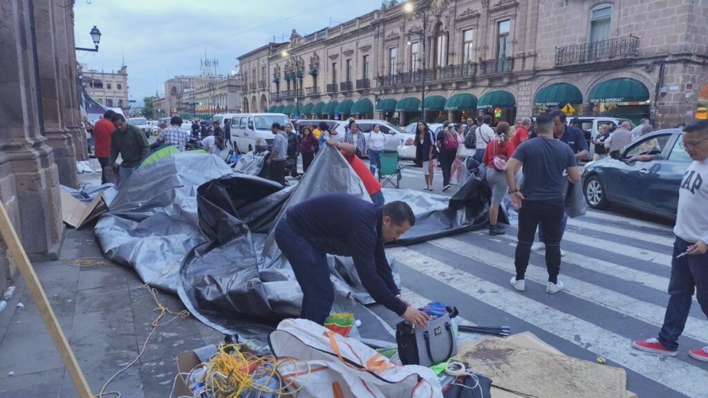 Tras 24 días en plantón frente a Palacio de Gobierno en el centro histórico de Morelia, integrantes del grupo magisterial Poder de Base levantaron casas de campaña y vehículos que mantenían estacionados en plena avenida Madero, sin tener respuesta concreta a las demandas que provocaron marchas, bloqueos e incluso intentos de cerrar las vías del tren durante más de 3 semanas.