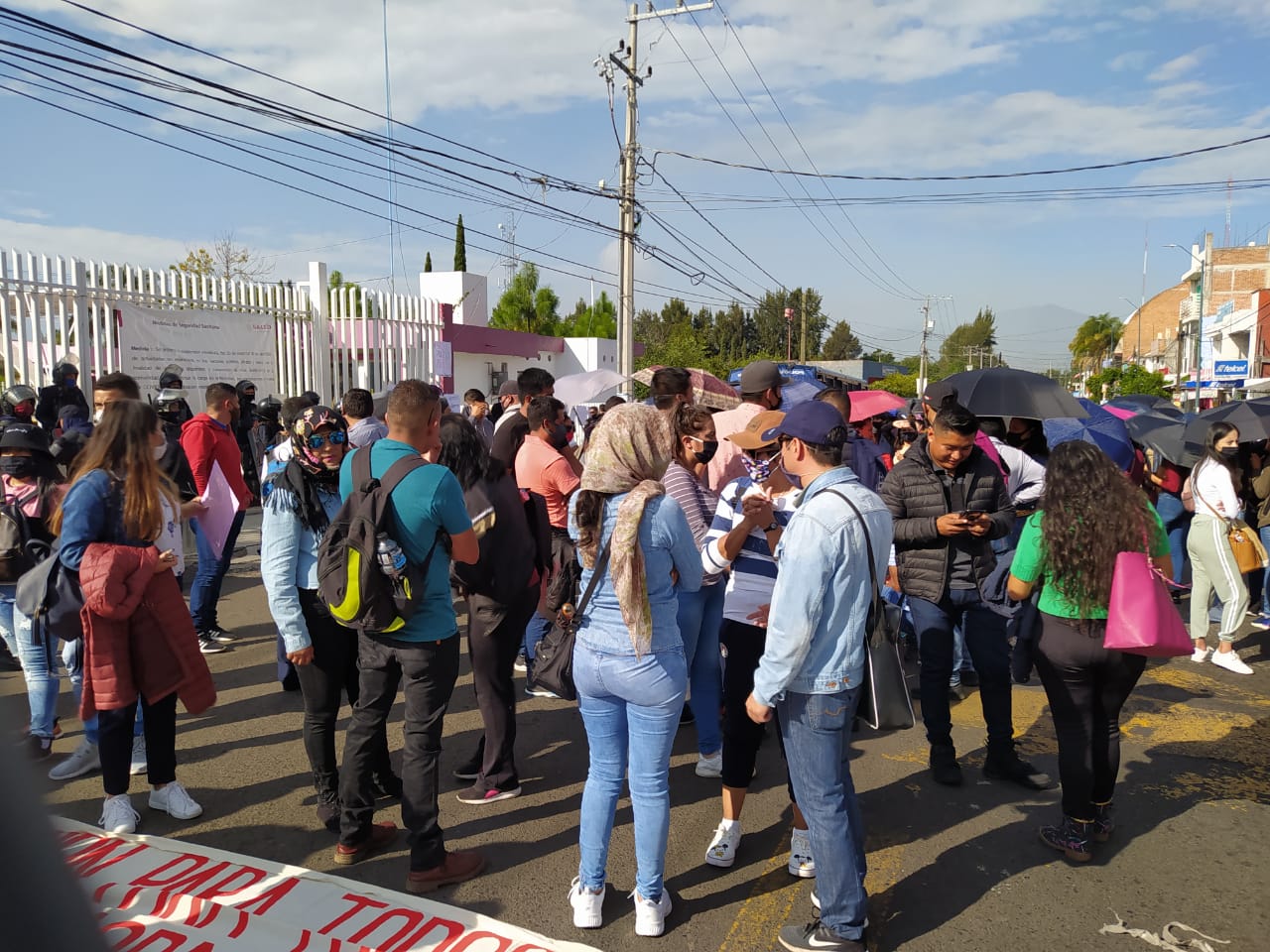 Con falta de sana distancia, presencia de menores entre la manifestación y personas sin cubrebocas, se llevó a cabo la marcha de un grupo de egresados de escuelas normales de la generación 2019 y 2020, que partió desde la esquina de avenida periodismo con el libramiento, hasta la Secretaría de Educación del estado, en compañía de una comitiva de la Sección XVIII de la fracción Poder de Base.