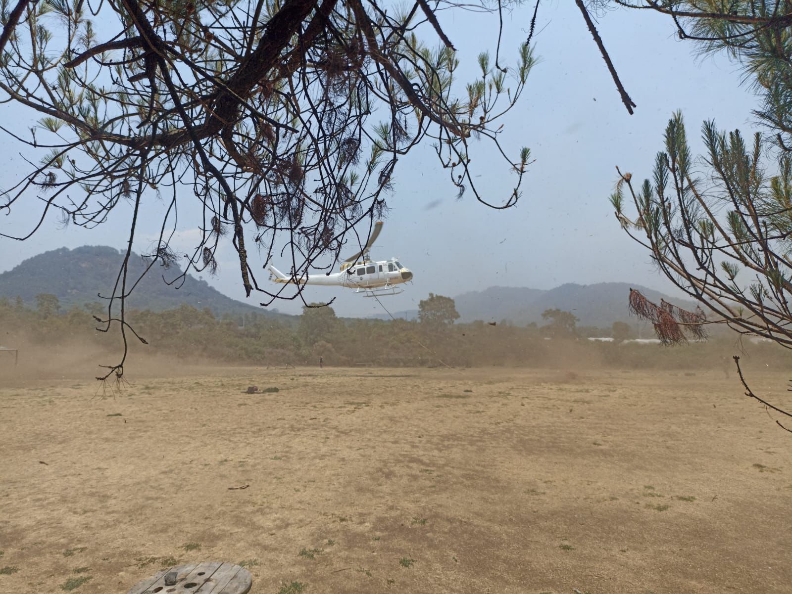 Señaló que el Gobierno del Estado ha destinado el equipamiento y personal para las labores de combate, acciones que se llevan a cabo por aire con el despliegue de una aeronave acondicionada con un helibalde y por tierra con las brigadas.