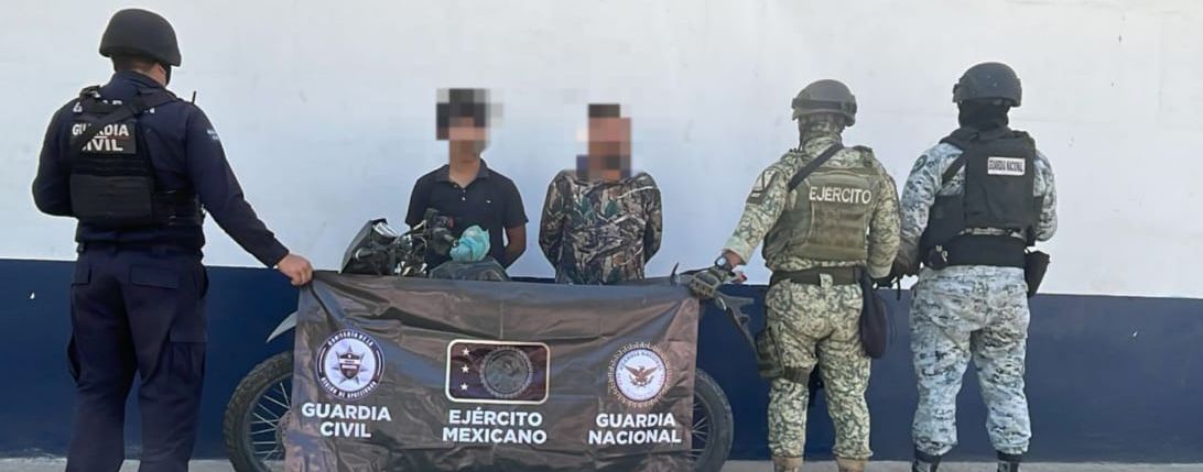 Los agentes de la Guardia Civil en conjunto con el Ejército Mexicano y la Guardia Nacional, detuvieron a dos personas del sexo masculino, de 20 y 44 años de edad respectivamente, cuando transitaban cerca de la localidad de Gámbara a bordo de una motocicleta de la marca Italika.