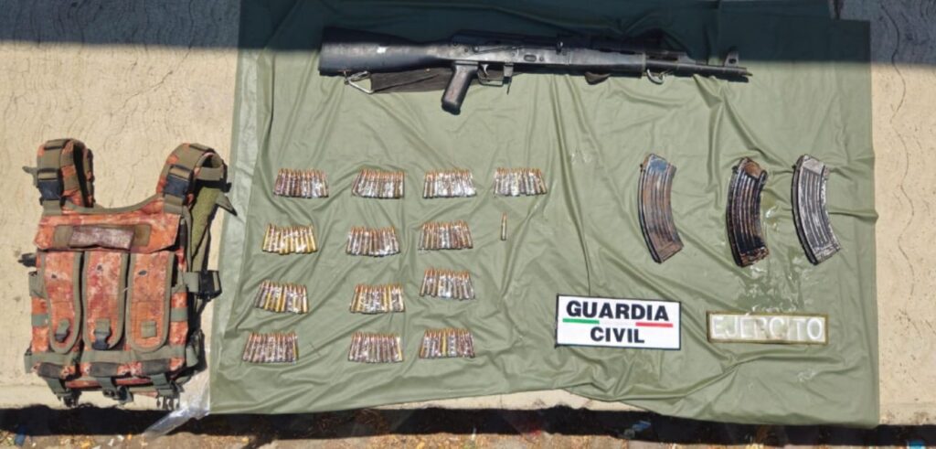 En la primera acción operativa, producto de los patrullajes efectuados en la localidad de El Tepetate, por parte de los agentes de la Guardia Civil y el Ejército Mexicano, se le decomisó al ahora indiciado un arma de fuego calibre 7.62X39 milímetros, junto a 131 cartuchos útiles y tres cargadores.
