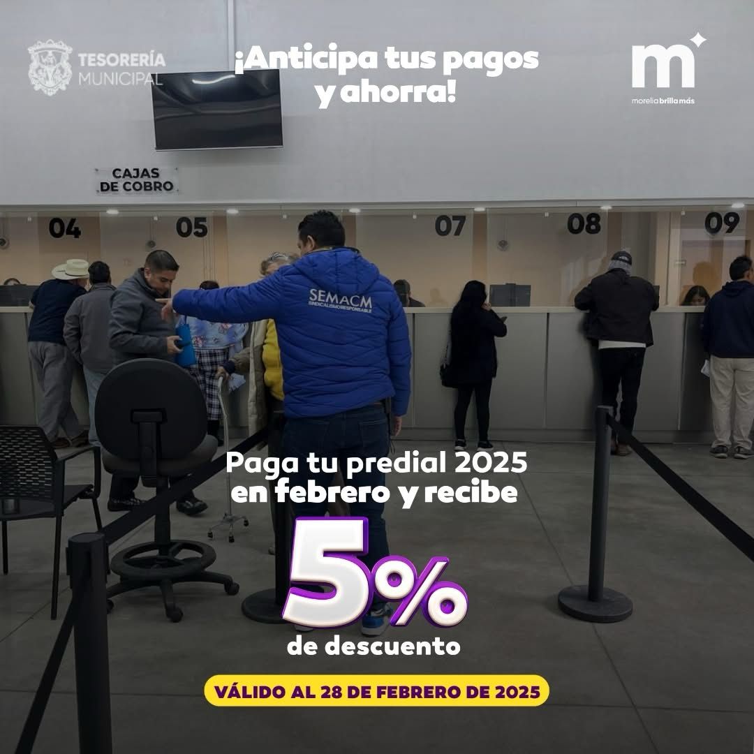 Todo febrero, aprovecha el 5% de descuento en tu predial Morelia