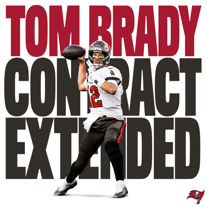 Los Bucs, han firmado una extensión de contrato con el mariscal de campo, Tom Brady, que vincula al veterano jugador con el equipo hasta el 2022, con lo que The GOAT, buscará conquistar su octavo campeonato de la NFL y el segundo con la franquicia de Tampa Bay.