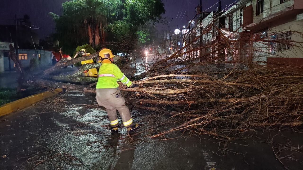La caída de los árboles se registró en la plaza Niños Héroes, colonia Electricistas, La Joya, Ejidal Isaac Arriaga, Boulevard García de León y Rector Díaz Rubio.