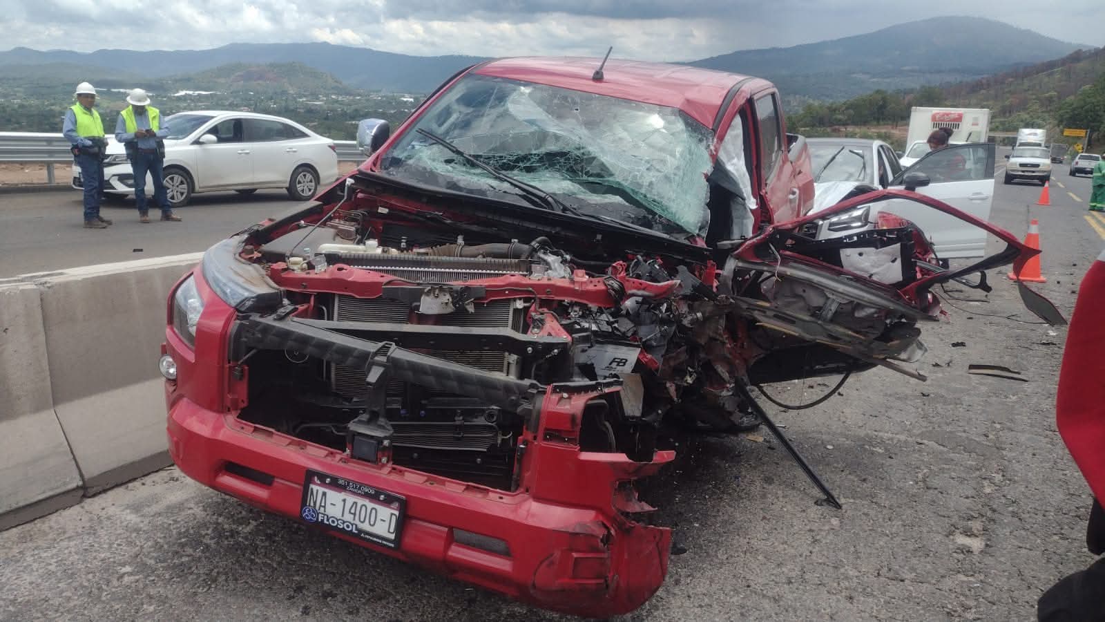 Los hechos se registraron en el tramo Uruapan-Pátzcuaro sin que se reportaran personas heridas de gravedad; cerca de la antigua caseta de cobro de San Ángel, donde la pesada unidad chocó uno de los remolques contra una camioneta Mitsubishi L200 de color rojo y un Audi color de blanco.