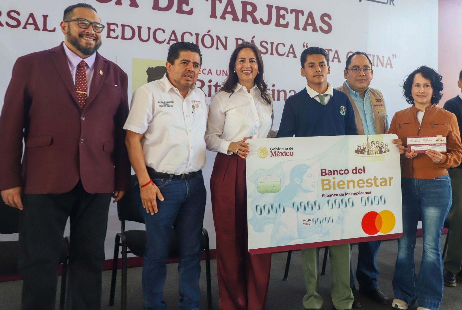 Subrayó que el compromiso es garantizar que todos los estudiantes tengan acceso a los apoyos educativos, en particular a la beca Rita Cetina, que considera el apoyo para 204 mil estudiantes en mil 985 escuelas, por un monto de mil 900 pesos bimestrales por familia y 700 pesos adicionales por cada otro miembro que curse este mismo nivel.
