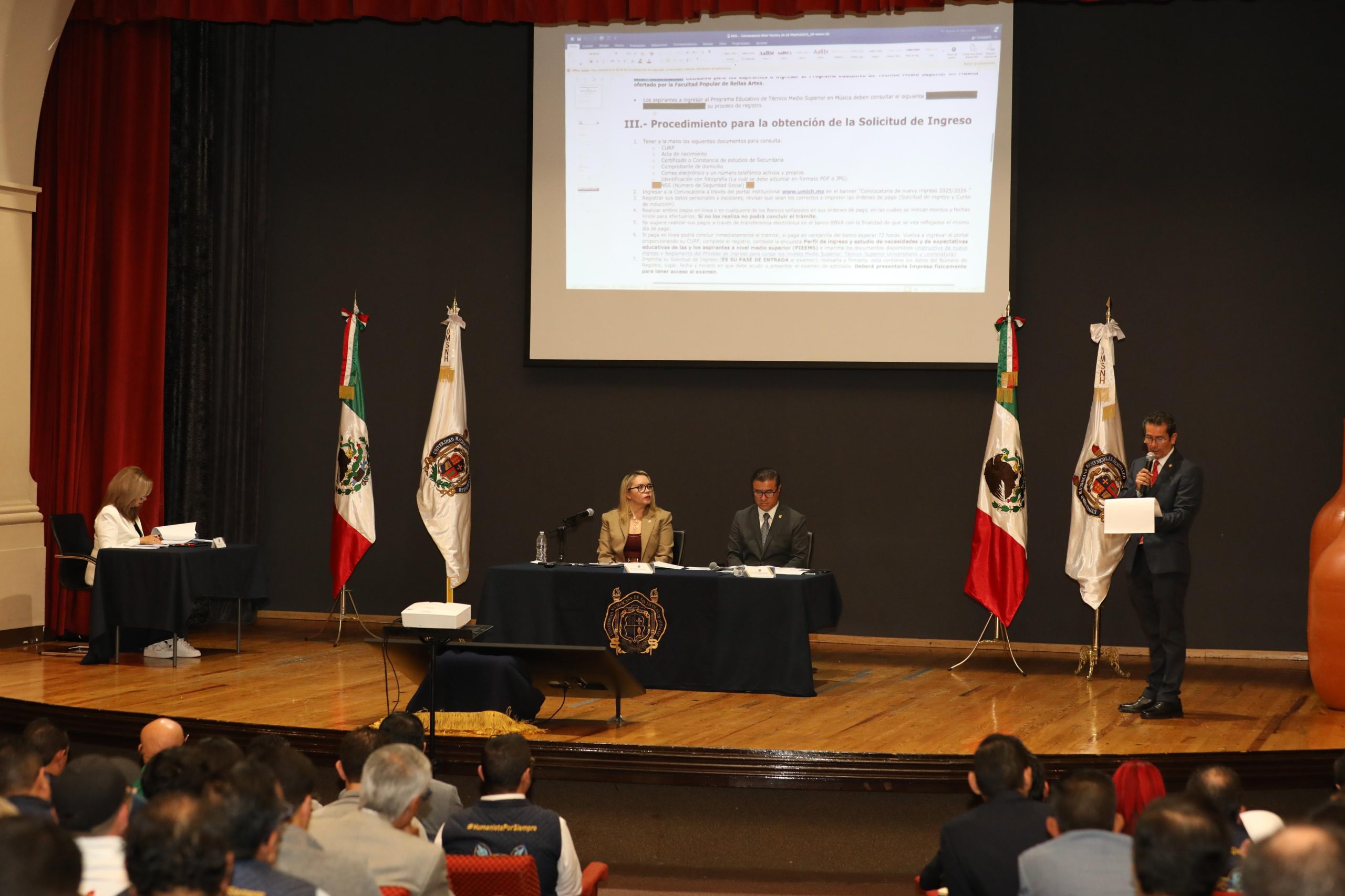Por su parte, el director de la Facultad de Ciencias Médicas y Biológicas, Víctor Hugo Mercado, quien encabeza la Comisión de Ingreso compartió con el pleno la propuesta de Calendario Escolar 2025-2026 que fue aprobada por el Consejo Universitario, la cual establece que la primera Convocatoria de Nuevo Ingreso se lanzará el 13 de febrero y cerrará el 06 de junio del año en curso.