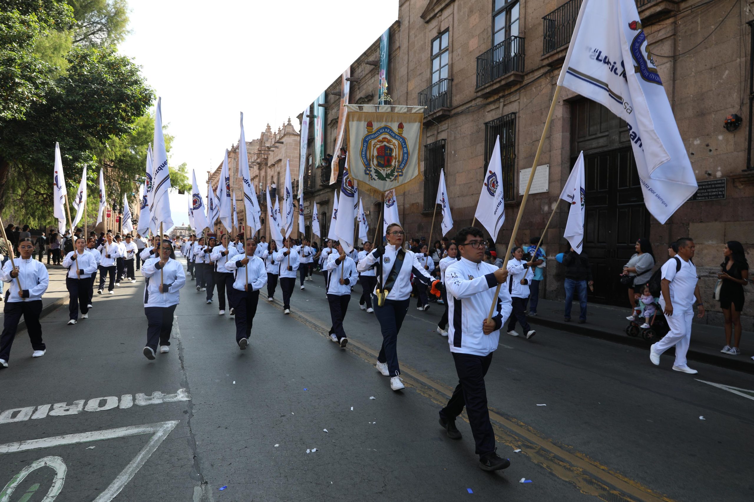También participaron las moradoras y moradores de las Casas del Estudiante quienes estuvieron acompañados por rectora Yarabí Ávila González, de igual forma, se contó con la participación de las y los integrantes del Gabinete Legal, directoras y directores de escuelas, facultades e institutos, consejeras y consejeros universitarios y del estudiantado, acompañados por la reconocida Banda de Guerra de la UMSNH.