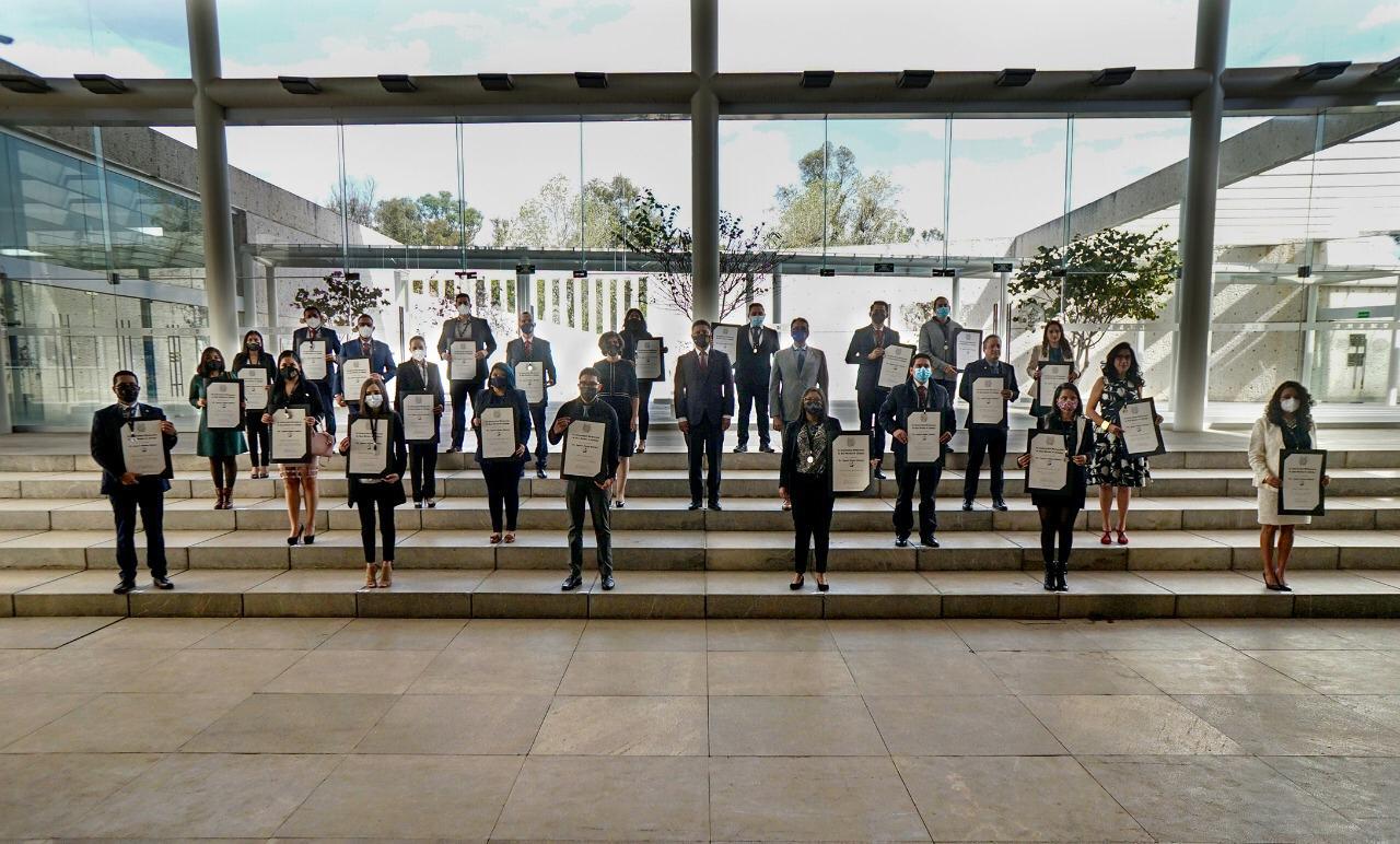 “Esta ceremonia es motivo de enorme alegría, en primer lugar, para nuestros estudiantes que cierran con este merecido reconocimiento un ciclo muy importante de sus vidas, el de la formación profesional en el posgrado; lo es también, en segundo lugar, para sus familiares, amigos y maestros, porque en los estudios de los jóvenes ven cifrados sus esfuerzos, esperanzas y sueños”.