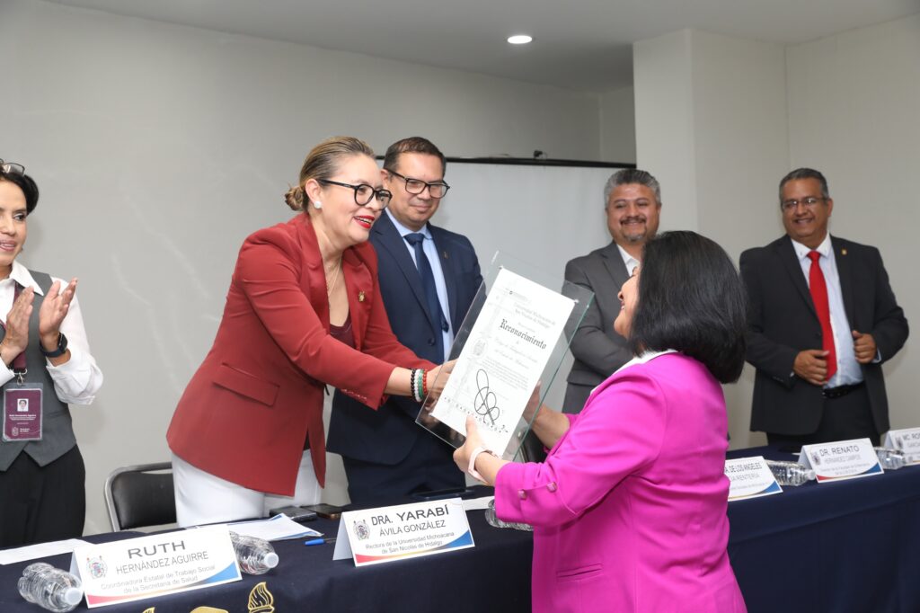 Subrayó la importancia de construir alianzas con otras instituciones y asociaciones para que la UMSNH continúe creciendo, de igual forma, reconoció el papel que el Colegio de Trabajadores Sociales de Michoacán y su presidenta María de los Ángeles García Rentería, tuvieron para que esta carrera se creara en la institución.