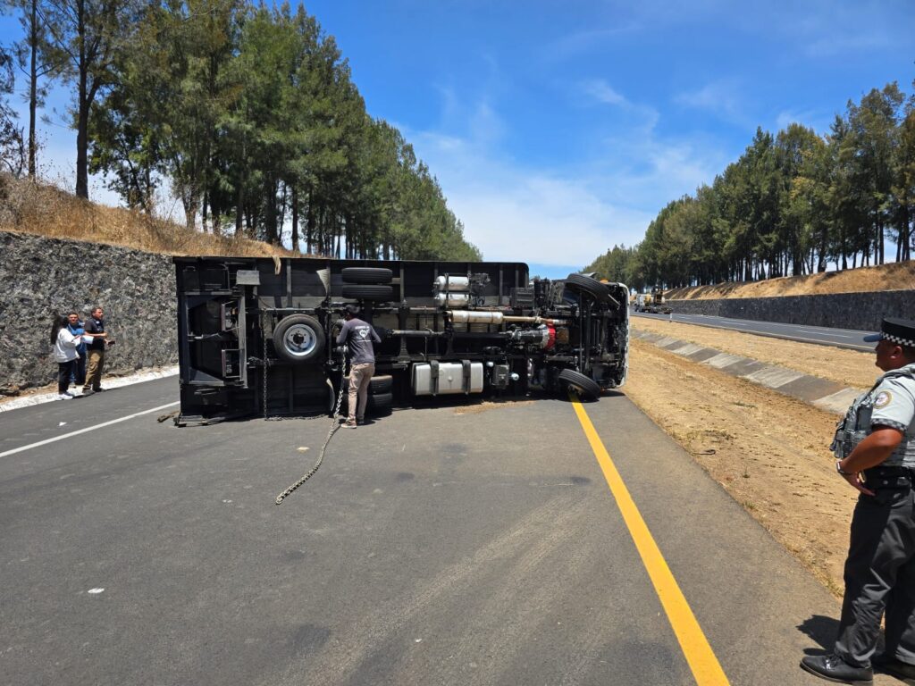 Con apoyo de grúas se realizaron las maniobras para retirar la unidad siniestrada, por lo que la circulación se vio afectada con paso alterno hasta que fue limpiada la carpeta asfáltica para evitar algún otro percance.