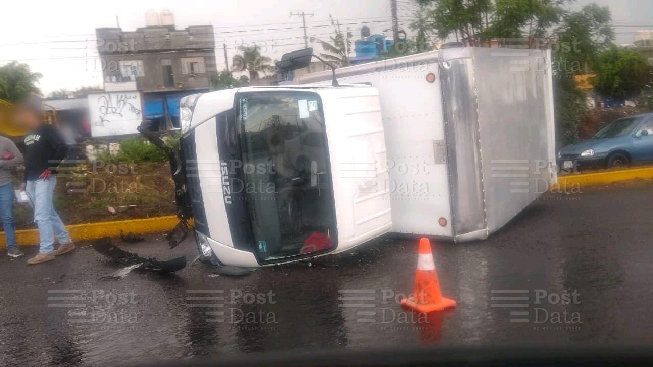 Morelia, Mich.- Un camión de carga volcó tras chocar contra el camellón central de la avenida Madero Poniente, también conocida como carretera a Quiroga, hecho que únicamente dejó daños materiales, comentaron contactos policiales y de rescate.