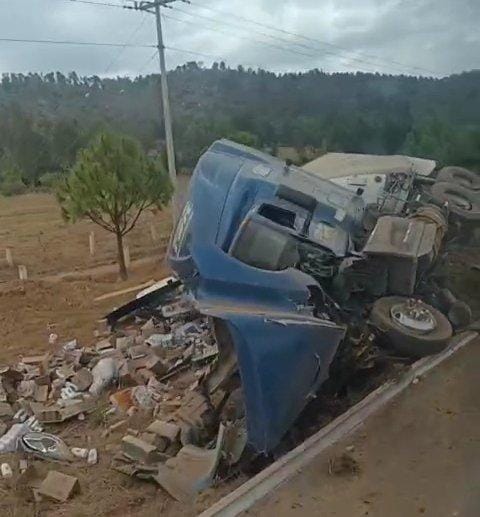 Pátzcuaro, Mich.- Un tráiler volcó y la mercancía que transportaba quedó regada a la orilla de la carpeta asfáltica tras dañarse el contenedor. El hecho tuvo lugar sobre la autopista Pátzcuaro-Cuitzeo, dentro del municipio de Pátzcuaro, informaron autoridades policiales y de rescate.
